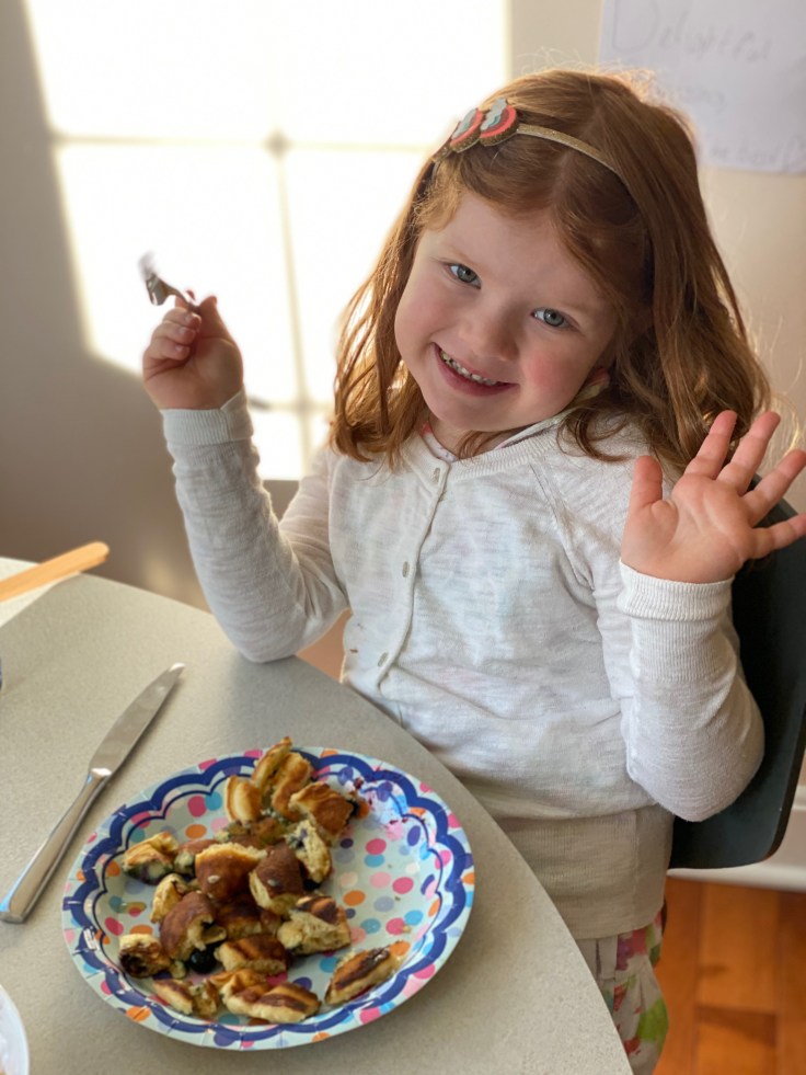 We found one! Here’s the recipe. The pancakes are especially good when you’ve picked the blueberries yourself. We serve them with maple syrup and confectioners sugar on top. Hope you love them as much as we do!
