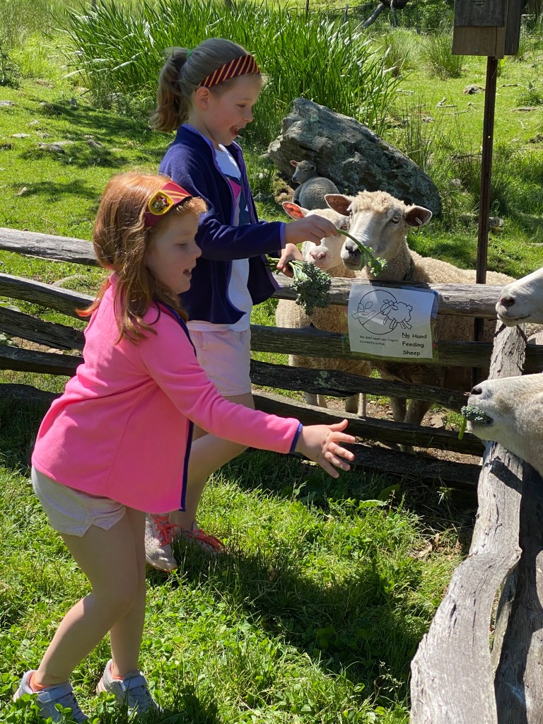 One great thing about Maple Bank is that you can feed the sheep. We’re pretty good at the call right now and they come running when they hear it and see us with the old vegetables they’ll eat right out of our hands.